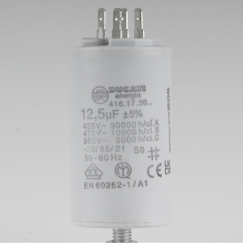 Mit dem 12,5 µF Ducati Anlaufkondensator sichern Sie sich ein robustes, langlebiges Qualitätsbauteil, das für einen stabilen Motorstart und zuverlässige Performance sorgt.