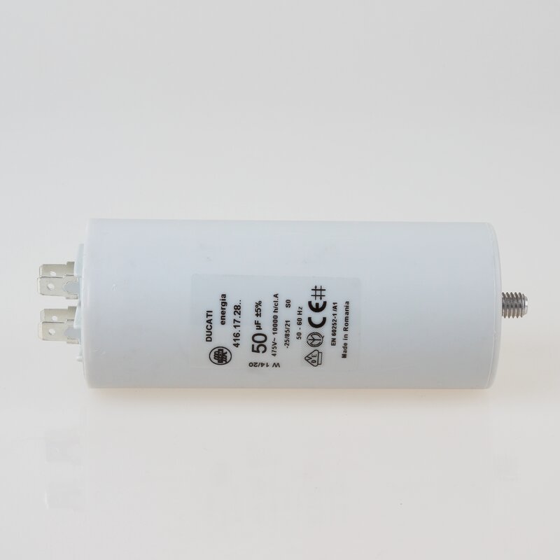 Mit dem Ducati 50 µF 450 V Kondensator erhalten Sie ein langlebiges, robustes Qualitätsbauteil für zuverlässigen Motoranlauf und Dauerbetrieb.