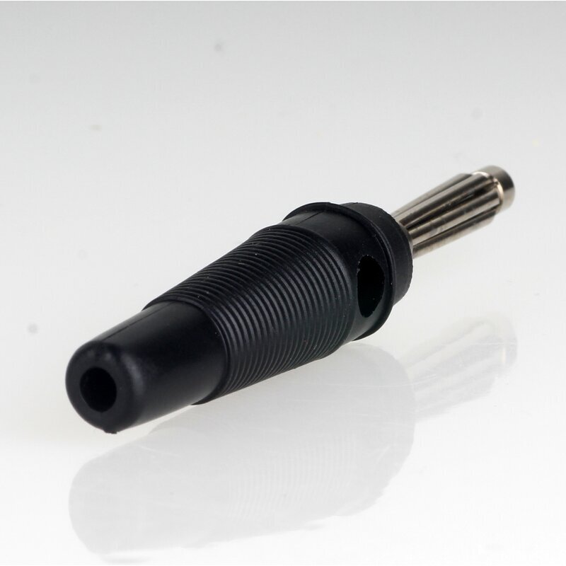 Die Lamellenkontakt-Bauform (Büschelstecker) sorgt für einen festen Sitz in 4-mm-Buchsen und gewährleistet minimale Übergangswiderstände sowie eine zuverlässige Signalübertragung. Über die integrierte Schraubklemme lassen sich Kabel schnell, sauber und ohne Löten anschließen. Das 4-mm-Querloch ermöglicht zusätzliche Anschlussvarianten, z. B. das Durchschleifen weiterer Leitungen.