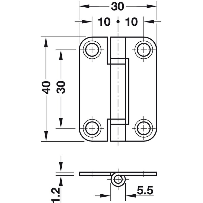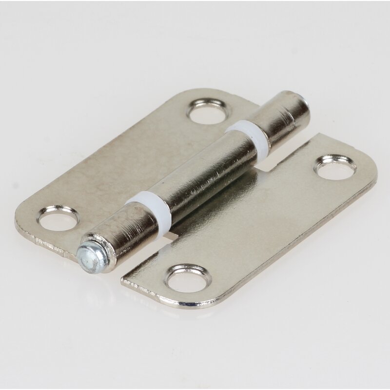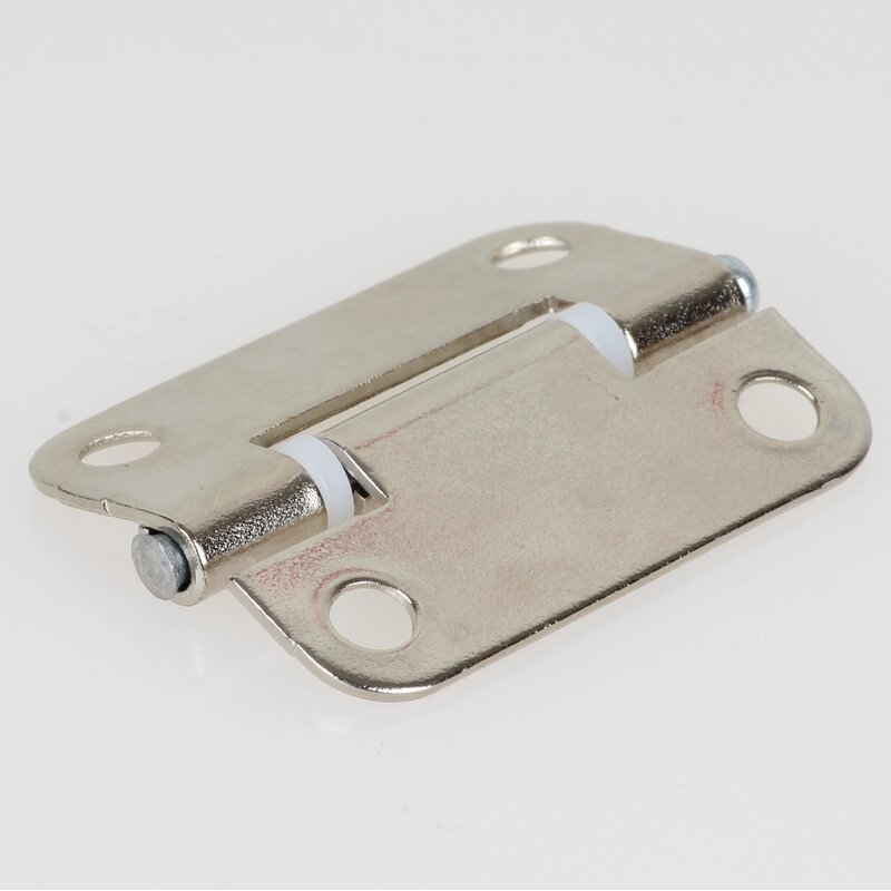 Die Ausführung verfügt über eine abgerundete Lappenform mit vernieteten Stift und einem Kunststoff-Gleitlager, das für leichtgängige und geräuscharme Bewegungen sorgt. Mit einer Länge von 40 mm und einer Breite von 29 mm eignet sich das Scharnier ideal für kompakte Türen und Möbelkonstruktionen.
