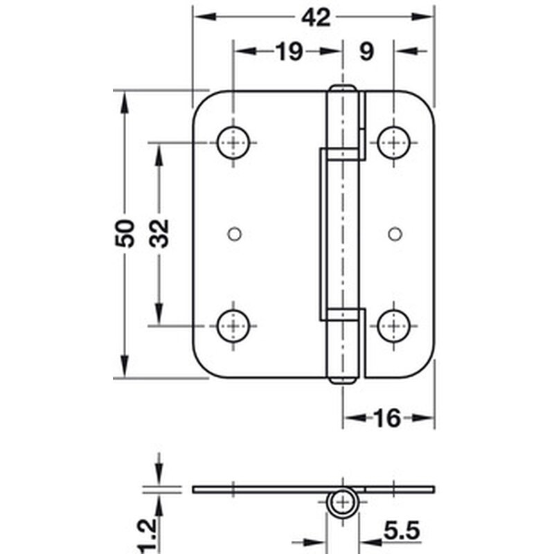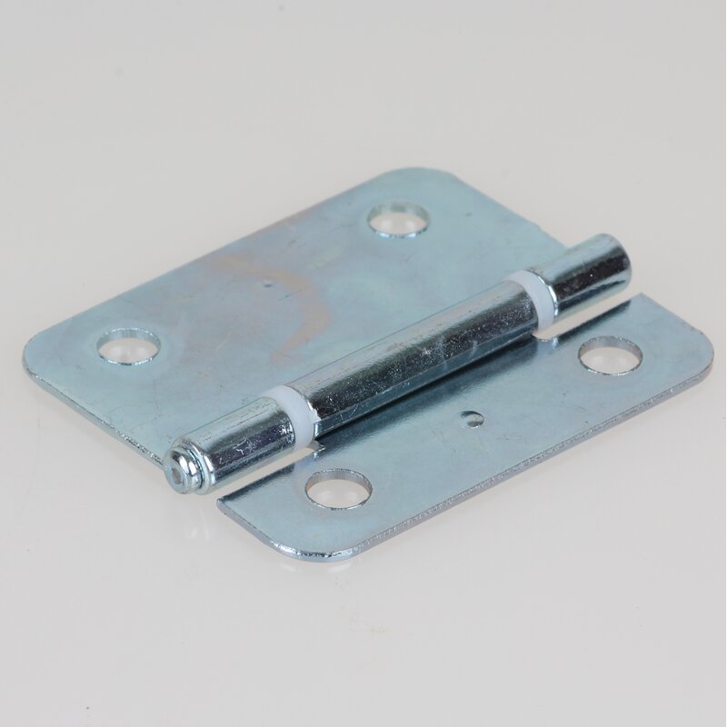 Die abgerundete Lappenform mit vernieteten Stift und Kunststoff-Gleitlager sorgt für eine leichtgängige, geräuscharme Funktion und eine lange Lebensdauer. Mit einer Länge von 52 mm und einer Breite von 42 mm eignet sich das Scharnier optimal für Faltschiebetüren in Wohn- und Objekteinrichtungen.