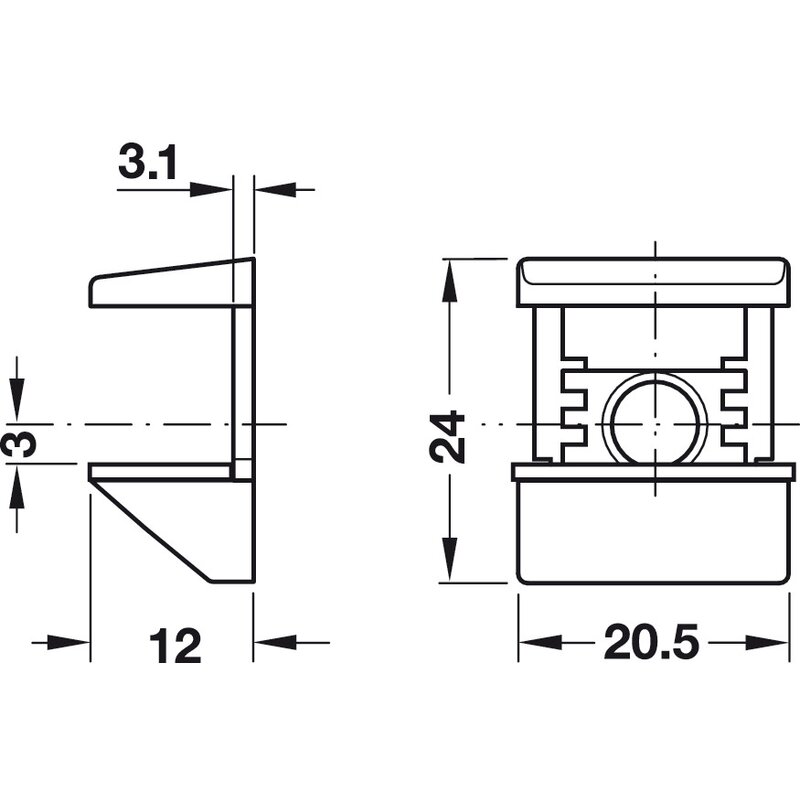 Der Häfele Bodenträger 282.13.600 ist ein speziell entwickelter Regalträger für Glasböden, der durch seine sichere und elegante Konstruktion überzeugt. Er wird in 3 mm oder 5 mm Bohrlöcher geschraubt und fixiert den Glasboden zuverlässig mit einer integrierten Klemmsicherung.