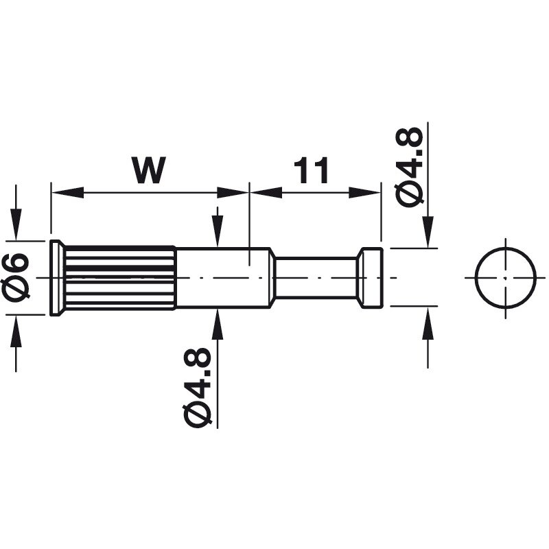 Mit einer Gesamtlänge von 27,5 mm ist der Bolzen für eine Wanddicke von 16 mm konzipiert. Die Montage gestaltet sich besonders einfach: Der Endkappenbolzen wird werkzeuglos in eine 5 mm Durchgangsbohrung eingesteckt.