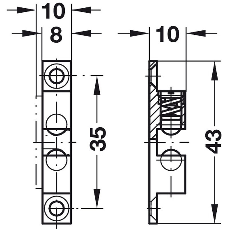 Der Häfele Ideal-Schnäpper Doppel-Kugelschnäpper (Herstellernummer 244.20.214) ist ein hochwertiger Beschlag für Türen, Klappen und Möbel. Mit einer Gesamtlänge von 43 mm und einer Höhe von 10 mm ist er besonders kompakt und vielseitig einsetzbar.