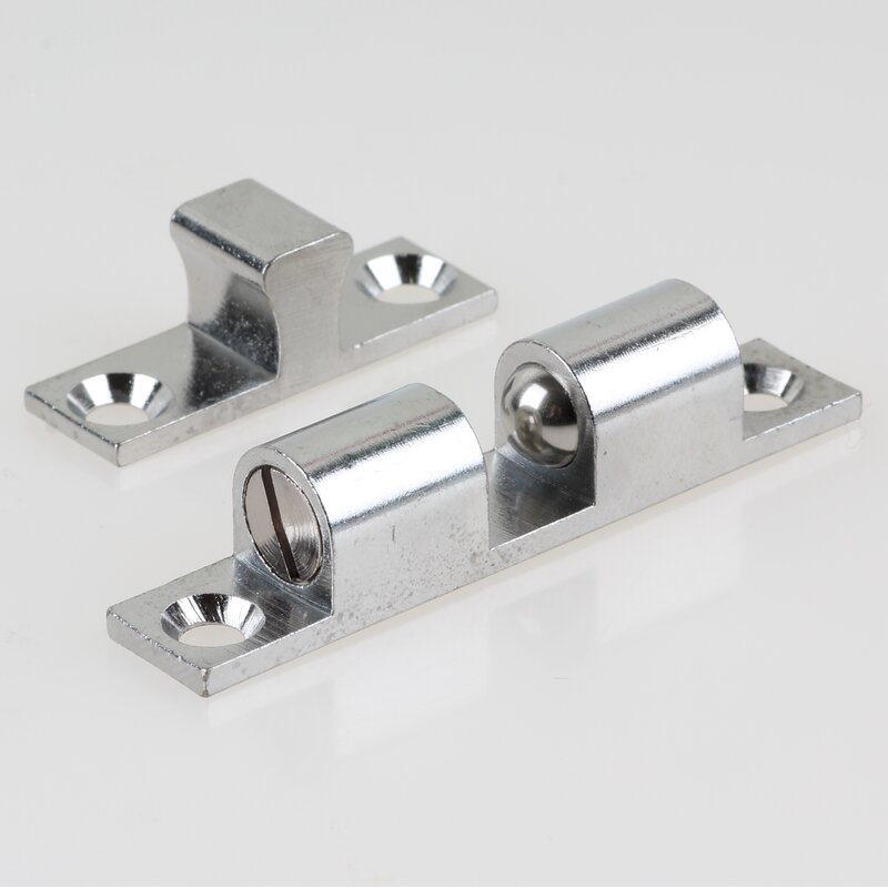 Die Montage erfolgt unkompliziert durch Schrauben. Dank seiner massiven Bauweise ist dieser Doppel-Kugelschnäpper ideal für den regelmäßigen Einsatz im Möbel- und Innenausbau.