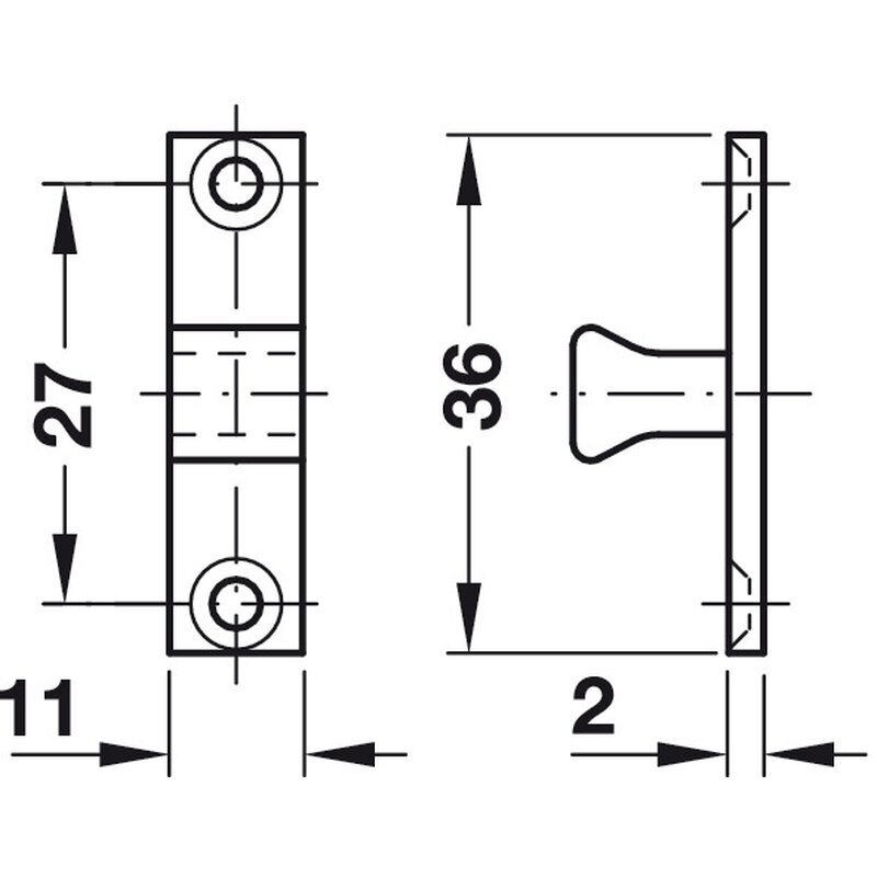 Der Häfele Ideal-Schnäpper Doppel-Kugelschnäpper (Herstellernummer 244.20.216) ist ein langlebiger und stabiler Beschlag für Türen, Klappen und Möbel. Mit einer Gesamtlänge von 60 mm und einer Höhe von 13 mm eignet er sich für Anwendungen, die eine robuste und präzise Schließlösung erfordern.