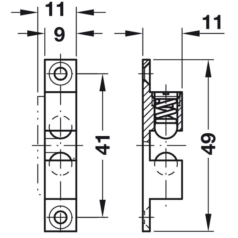 Mit einer Gesamtlänge von 49 mm und einer Höhe von 11 mm ist er kompakt und vielseitig einsetzbar. Die Zuhaltungskraft lässt sich individuell mit einer Flachklinge einstellen, sodass der Schnäpper optimal an die jeweilige Anwendung angepasst werden kann.