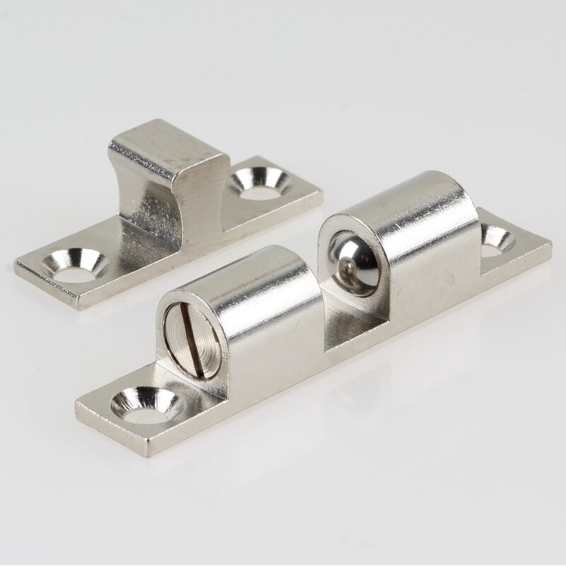 Das Schnäppergehäuse und das Gegenstück bestehen aus Messing mit matter Nickel-Oberfläche, während die Kugeln aus Edelstahl gefertigt sind – für maximale Haltbarkeit und eine moderne, dezente Optik. Die Zuhaltungskraft lässt sich individuell einstellen, sodass der Widerstand optimal an die jeweilige Anwendung angepasst werden kann.