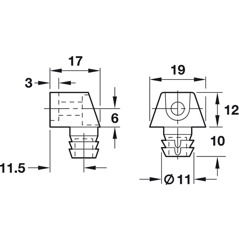 Der Häfele Korpusverbinder / Wandverbinder in den Maßen 17 x 11,5 mm ist ein vielseitiges Verbindungselement aus robustem Kunststoff in der Farbe braun. Er eignet sich ideal zum stabilen Verbinden von Möbelwänden und sorgt für präzise und belastbare Korpusverbindungen.
