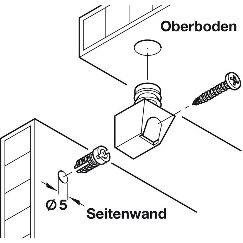 Die Montage erfolgt durch Einbohren in die Möbelwand, wodurch eine saubere und unauffällige Befestigung gewährleistet ist. Mit seiner kompakten Bauweise ermöglicht der Verbinder eine schnelle und einfache Verarbeitung – sowohl im professionellen Möbelbau als auch bei Heimwerkerprojekten.