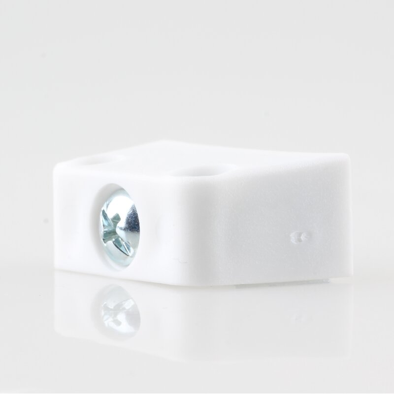 In der Farbe weiß passt sich der Verbinder unauffällig an helle Möbeloberflächen an. Besonders geeignet ist er für Kleinkorpusse und Verbindungen, die nur geringer Belastung ausgesetzt sind.