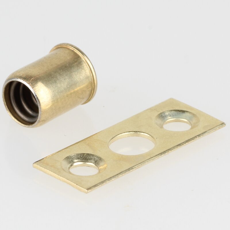 Kugelschnäpper und Schließblech aus Stahl, vermessingt
