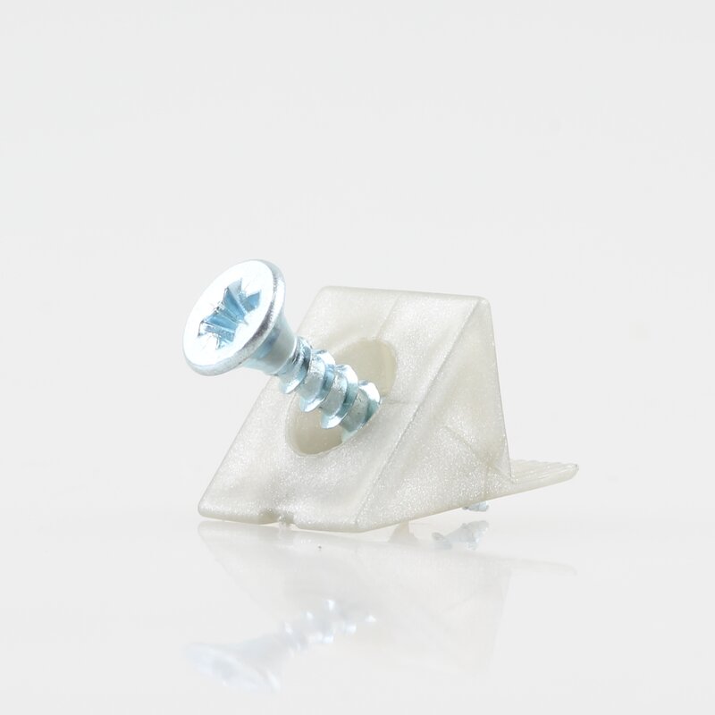 Der Rückwandverbinder wird als Anschlag für Rückwände genutzt und sorgt für eine stabile Befestigung am Möbelkorpus. Die Montage erfolgt durch Verschrauben in Rückwand und Korpus. Eine passende Schraube mit Durchmesser 3,5 mm und Länge 20 mm ist im Lieferumfang enthalten, sodass die direkte Verarbeitung möglich ist.