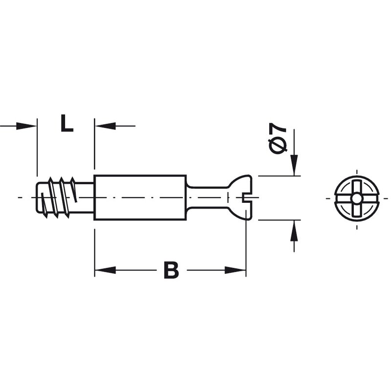 Der Bolzen ist flexibel einsetzbar und kann sowohl mit einem Kreuzschlitz PZ2 als auch mit einer Flachklinge verschraubt werden. Damit ist er universell im Möbelbau einsetzbar, z. B. in Kombination mit Häfele Minifix Exzentergehäusen.