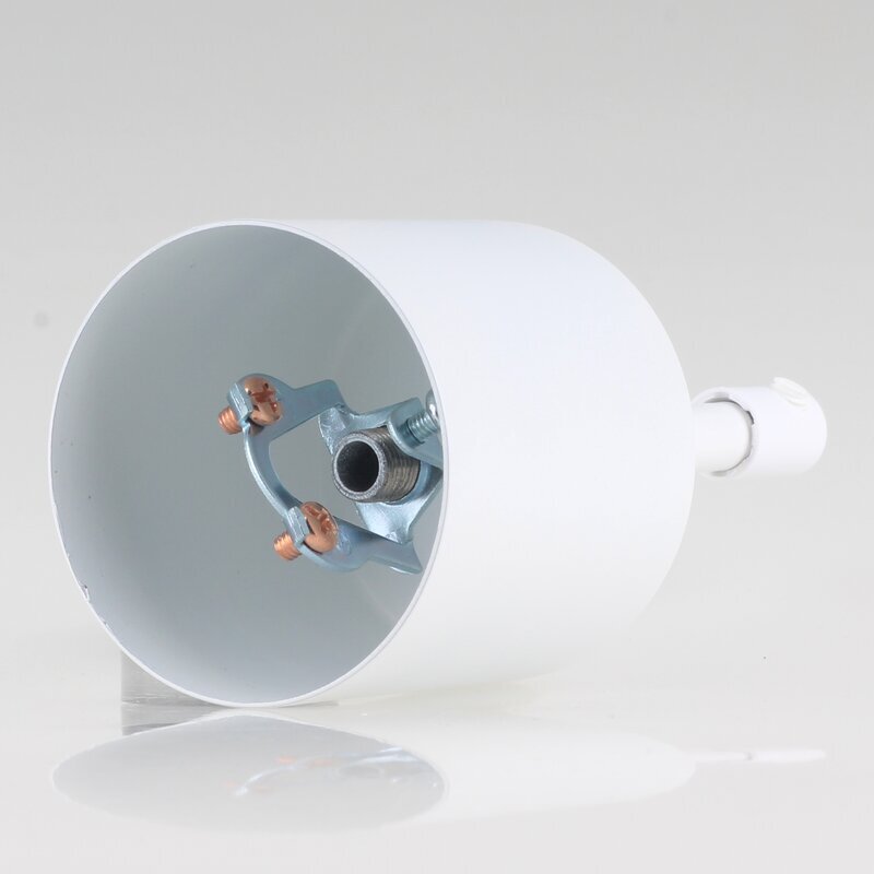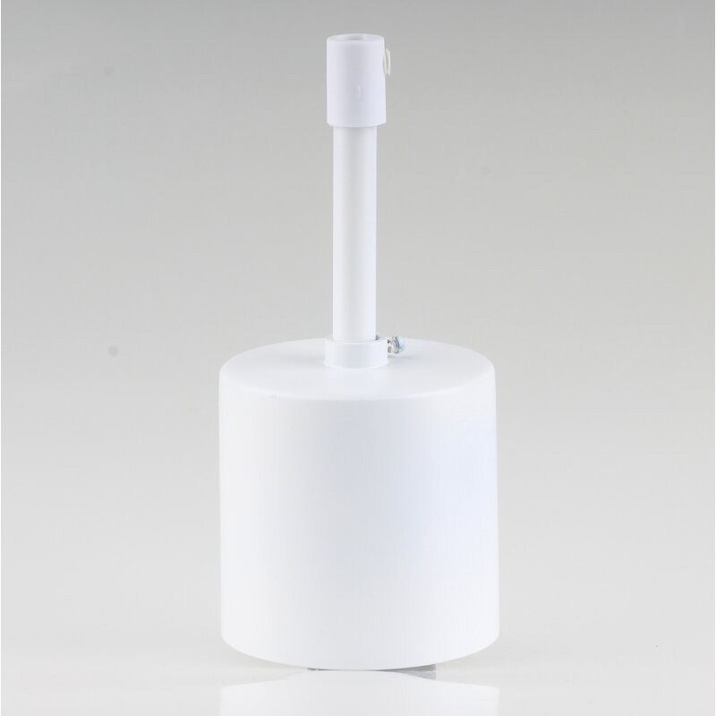 Der Lampen-Deckenbaldachin in Zylinderform aus Metall, weiß matt (Ø 62 mm, Höhe 63 mm) mit Pendelrohr und integrierter Zugentlastung ist eine hochwertige Komplettlösung für die fachgerechte Montage von Pendel- und Hängeleuchten. Die schlichte, zylindrische Bauform in mattem Weiß passt ideal zu modernen, klassischen und skandinavischen Leuchtenkonzepten.