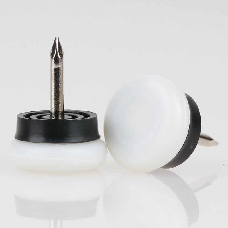 Der Möbelgleiter 18 mm rund mit beweglichem Nagel ist die clevere Lösung für Möbel mit leicht schräg stehenden Beinen. Das naturfarbene Kunststoffpolster (PVC) passt sich durch den schwenkbaren Nagel flexibel dem Neigungswinkel an und sorgt so für optimalen Bodenschutz, stabilen Stand und ein ruhiges, geräuscharmes Gleiten.