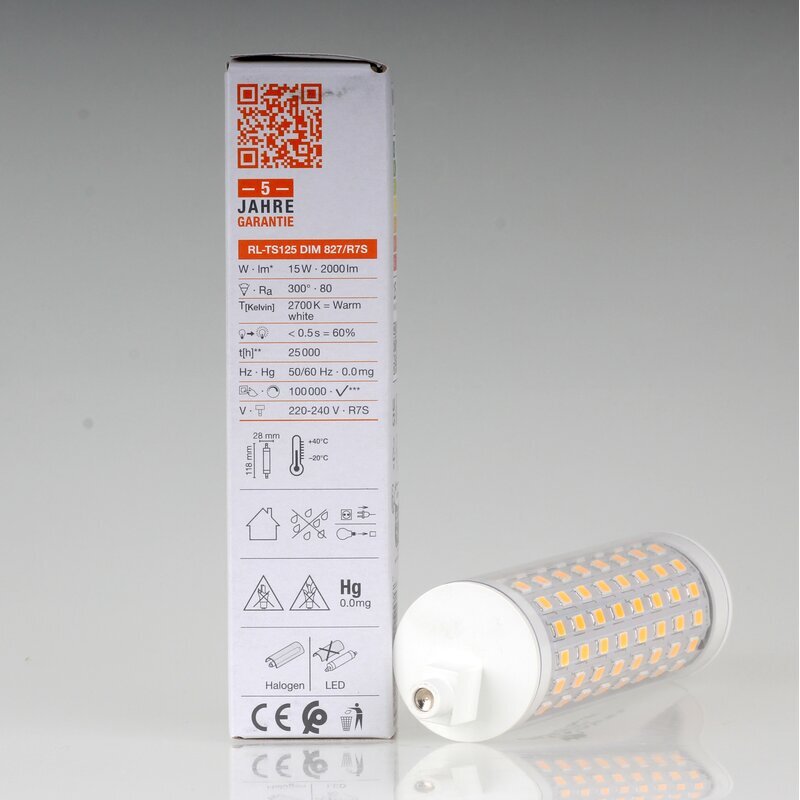 Radium R7s LED-Stablampe Leuchtmittel 15W (125W) 240V 2.700K 2000 lm warmweiß 118mm dimmbar