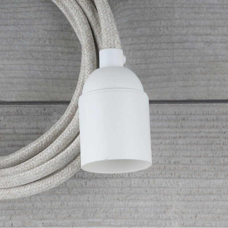 Textilkabel Kiesel mit E27 Lampenfassung Glattmantel Kunststoff weiß 1-5m